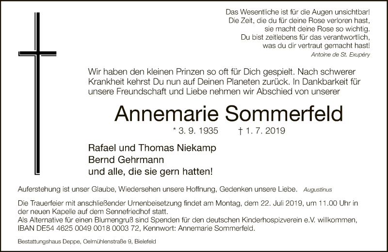 Hier finden Sie alle Traueranzeigen aus der Zeitung, die bisher für Annemarie Sommerfeld erschienen sind. Weitere Traueranzeigen, die in der Zeitung erscheinen, werden hier ebenfalls aufgelistet