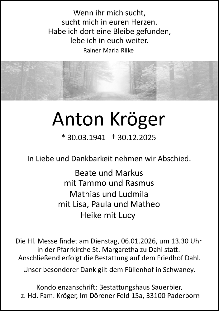 Hier finden Sie alle Traueranzeigen aus der Zeitung, die bisher für Anton Kröger erschienen sind. Weitere Traueranzeigen, die in der Zeitung erscheinen, werden hier ebenfalls aufgelistet