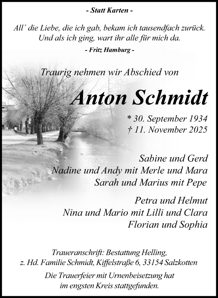 Hier finden Sie alle Traueranzeigen aus der Zeitung, die bisher für Anton Schmidt erschienen sind. Weitere Traueranzeigen, die in der Zeitung erscheinen, werden hier ebenfalls aufgelistet