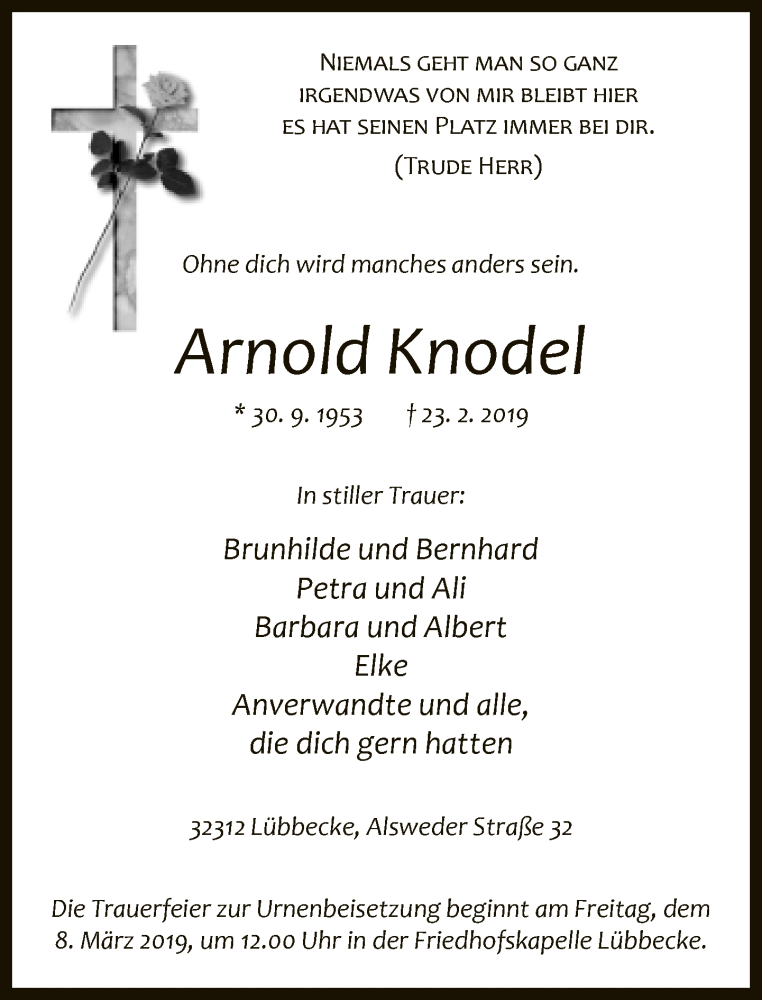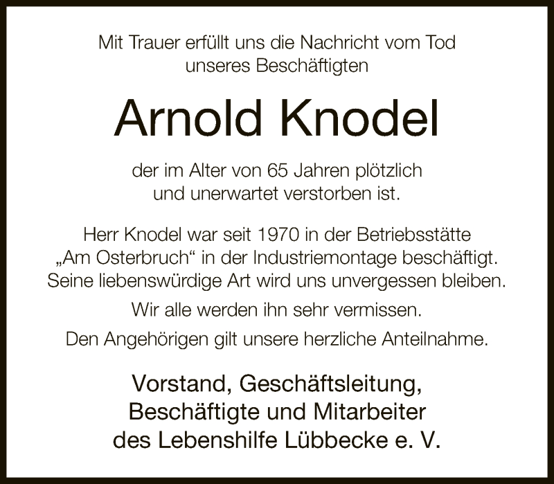 Hier finden Sie alle Traueranzeigen aus der Zeitung, die bisher für Arnold Knodel erschienen sind. Weitere Traueranzeigen, die in der Zeitung erscheinen, werden hier ebenfalls aufgelistet