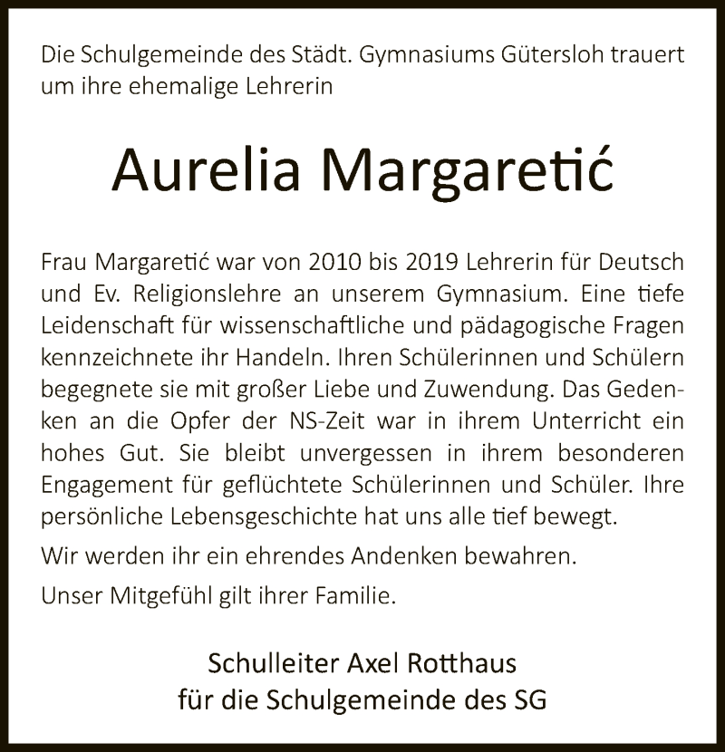 Hier finden Sie alle Traueranzeigen aus der Zeitung, die bisher für Aurelia Margaretic erschienen sind. Weitere Traueranzeigen, die in der Zeitung erscheinen, werden hier ebenfalls aufgelistet