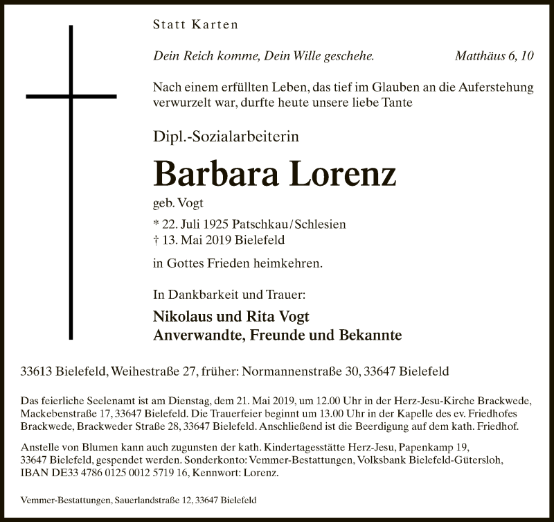 Hier finden Sie alle Traueranzeigen aus der Zeitung, die bisher für Barbara Lorenz erschienen sind. Weitere Traueranzeigen, die in der Zeitung erscheinen, werden hier ebenfalls aufgelistet