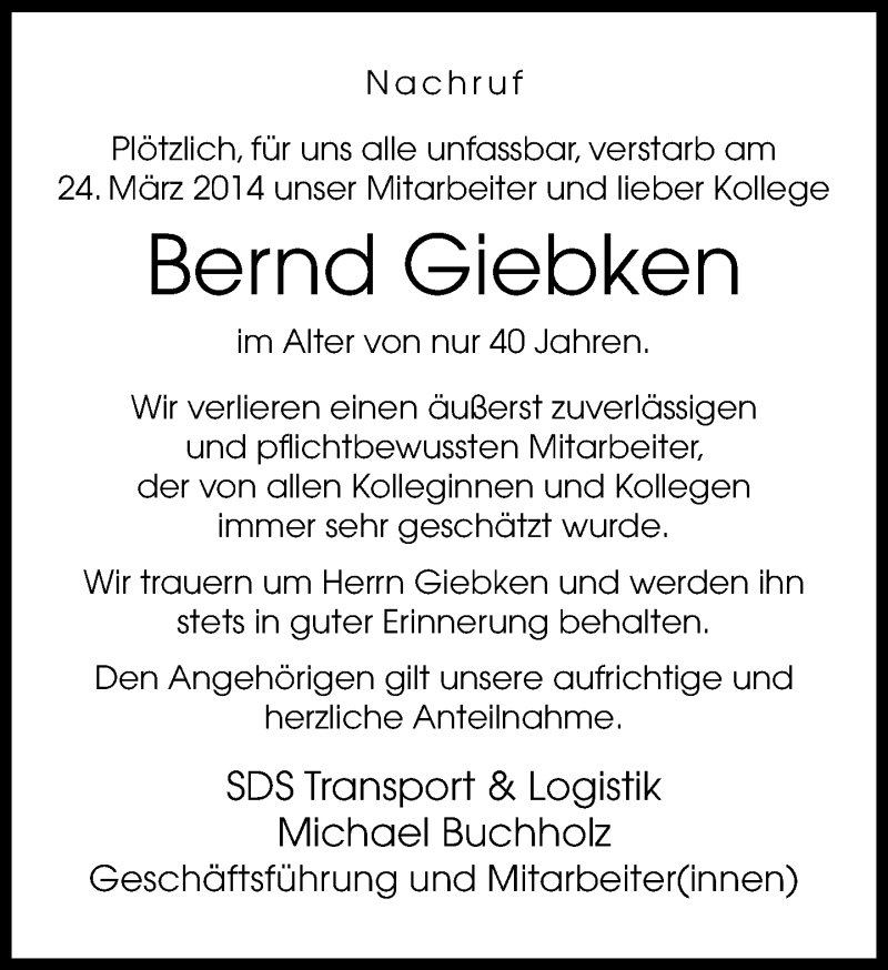 Hier finden Sie alle Traueranzeigen aus der Zeitung, die bisher für Bernd Giebken erschienen sind. Weitere Traueranzeigen, die in der Zeitung erscheinen, werden hier ebenfalls aufgelistet