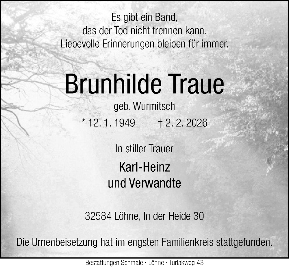 Hier finden Sie alle Traueranzeigen aus der Zeitung, die bisher für Brunhilde Traue erschienen sind. Weitere Traueranzeigen, die in der Zeitung erscheinen, werden hier ebenfalls aufgelistet