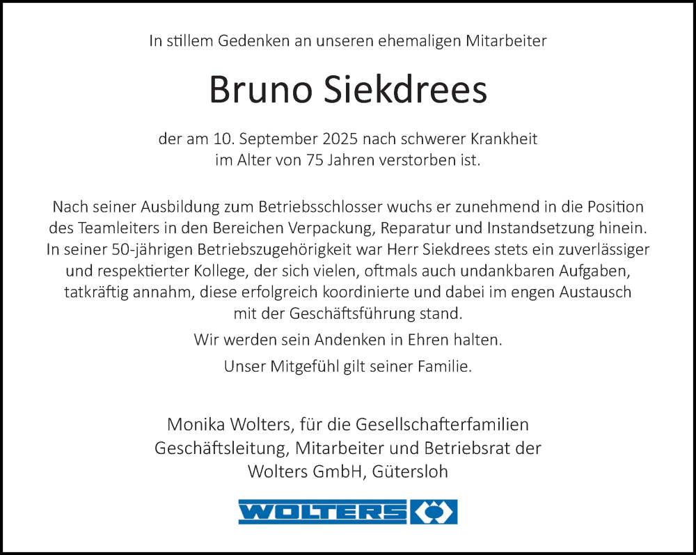 Hier finden Sie alle Traueranzeigen aus der Zeitung, die bisher für Bruno Siekdrees erschienen sind. Weitere Traueranzeigen, die in der Zeitung erscheinen, werden hier ebenfalls aufgelistet