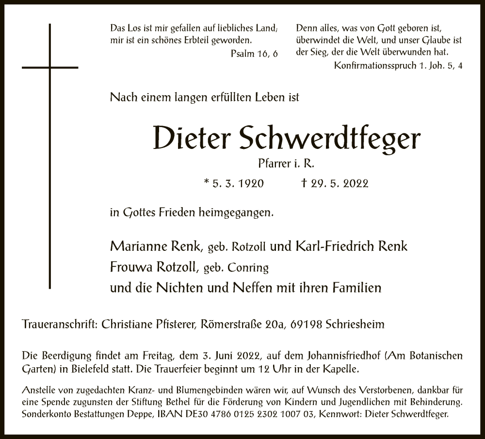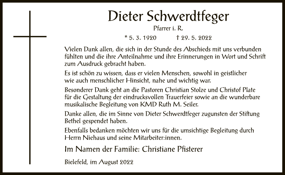 Hier finden Sie alle Traueranzeigen aus der Zeitung, die bisher für Dieter Schwerdtfeger erschienen sind. Weitere Traueranzeigen, die in der Zeitung erscheinen, werden hier ebenfalls aufgelistet
