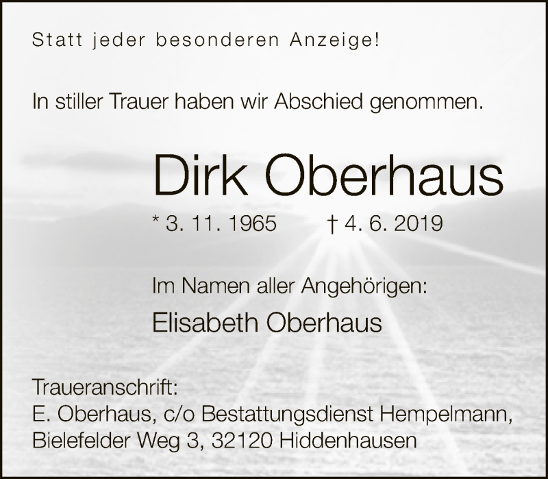 Hier finden Sie alle Traueranzeigen aus der Zeitung, die bisher für Dirk Oberhaus erschienen sind. Weitere Traueranzeigen, die in der Zeitung erscheinen, werden hier ebenfalls aufgelistet