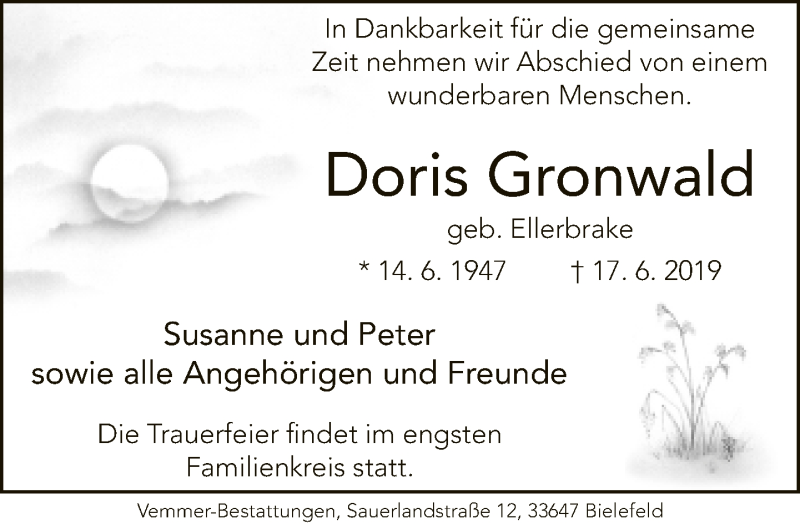 Hier finden Sie alle Traueranzeigen aus der Zeitung, die bisher für Doris Gronwald erschienen sind. Weitere Traueranzeigen, die in der Zeitung erscheinen, werden hier ebenfalls aufgelistet