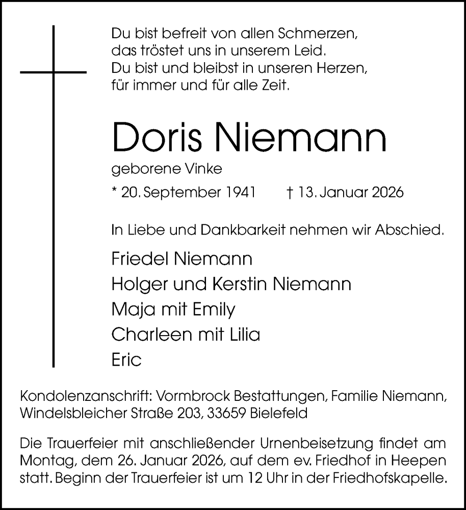 Hier finden Sie alle Traueranzeigen aus der Zeitung, die bisher für Doris Niemann erschienen sind. Weitere Traueranzeigen, die in der Zeitung erscheinen, werden hier ebenfalls aufgelistet
