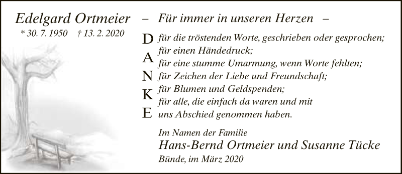 Hier finden Sie alle Traueranzeigen aus der Zeitung, die bisher für Edelgard Ortmeier erschienen sind. Weitere Traueranzeigen, die in der Zeitung erscheinen, werden hier ebenfalls aufgelistet