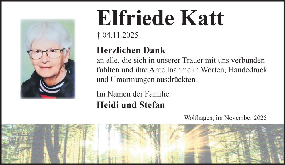 Hier finden Sie alle Traueranzeigen aus der Zeitung, die bisher für Elfriede Katt erschienen sind. Weitere Traueranzeigen, die in der Zeitung erscheinen, werden hier ebenfalls aufgelistet
