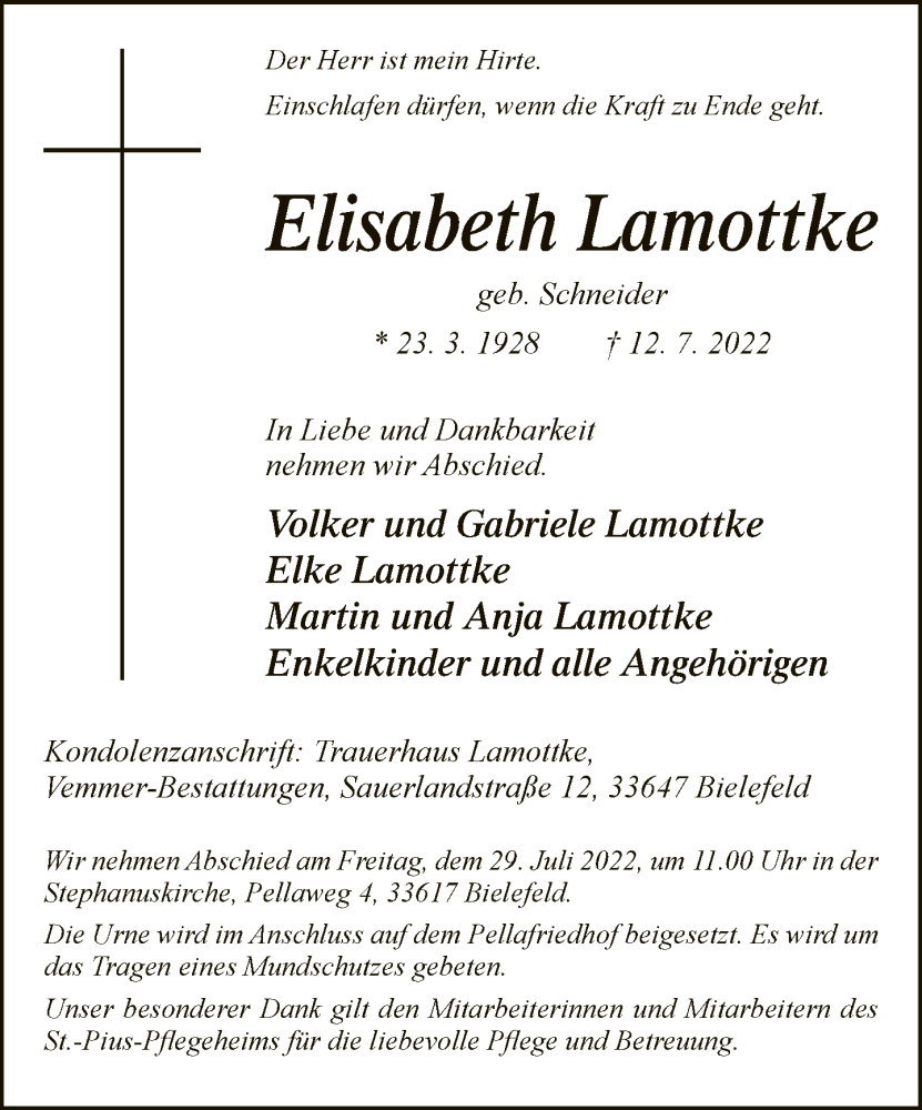 Hier finden Sie alle Traueranzeigen aus der Zeitung, die bisher für Elisabeth Lamottke erschienen sind. Weitere Traueranzeigen, die in der Zeitung erscheinen, werden hier ebenfalls aufgelistet