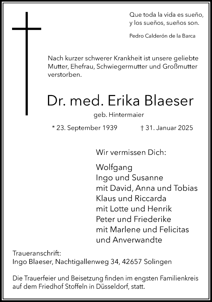 Hier finden Sie alle Traueranzeigen aus der Zeitung, die bisher für Erika Blaeser erschienen sind. Weitere Traueranzeigen, die in der Zeitung erscheinen, werden hier ebenfalls aufgelistet