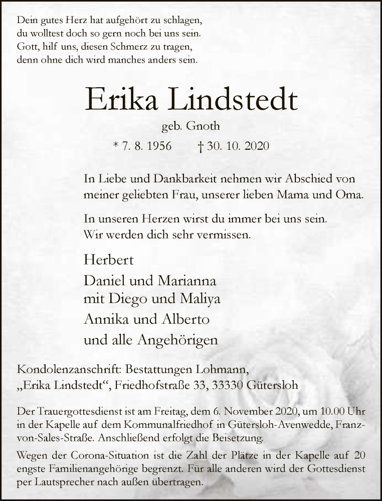Hier finden Sie alle Traueranzeigen aus der Zeitung, die bisher für Erika Lindstedt erschienen sind. Weitere Traueranzeigen, die in der Zeitung erscheinen, werden hier ebenfalls aufgelistet