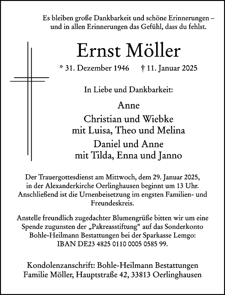 Hier finden Sie alle Traueranzeigen aus der Zeitung, die bisher für Ernst Möller erschienen sind. Weitere Traueranzeigen, die in der Zeitung erscheinen, werden hier ebenfalls aufgelistet