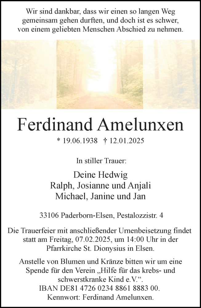 Hier finden Sie alle Traueranzeigen aus der Zeitung, die bisher für Ferdinand Amelunxen erschienen sind. Weitere Traueranzeigen, die in der Zeitung erscheinen, werden hier ebenfalls aufgelistet