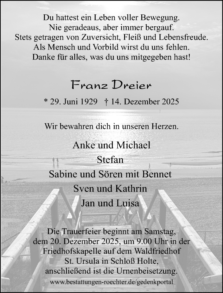 Hier finden Sie alle Traueranzeigen aus der Zeitung, die bisher für Franz Dreier erschienen sind. Weitere Traueranzeigen, die in der Zeitung erscheinen, werden hier ebenfalls aufgelistet