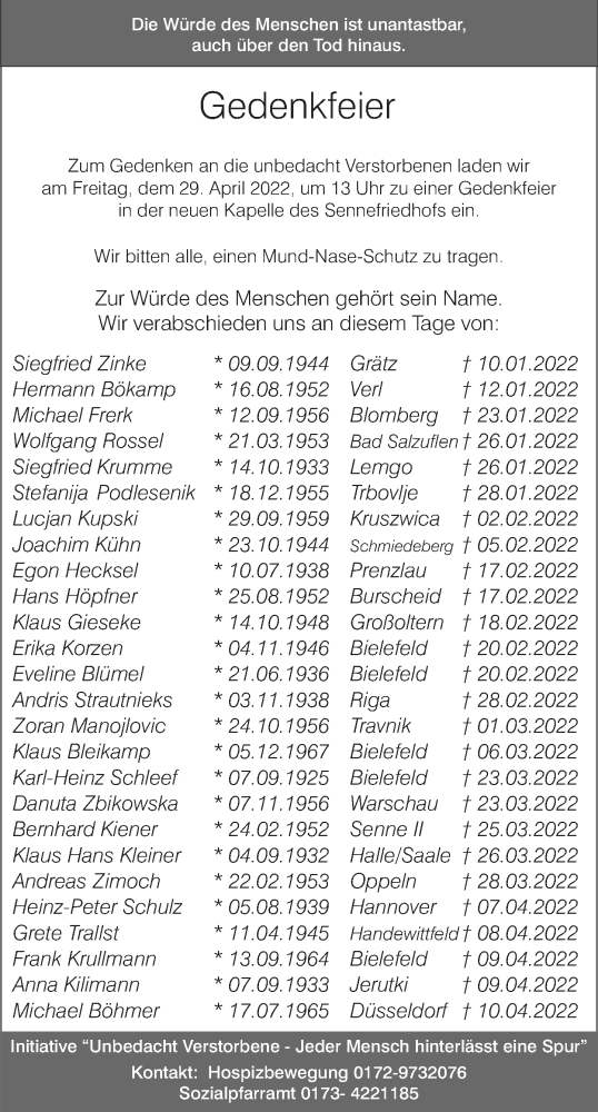 Hier finden Sie alle Traueranzeigen aus der Zeitung, die bisher für Gedenkfeier erschienen sind. Weitere Traueranzeigen, die in der Zeitung erscheinen, werden hier ebenfalls aufgelistet