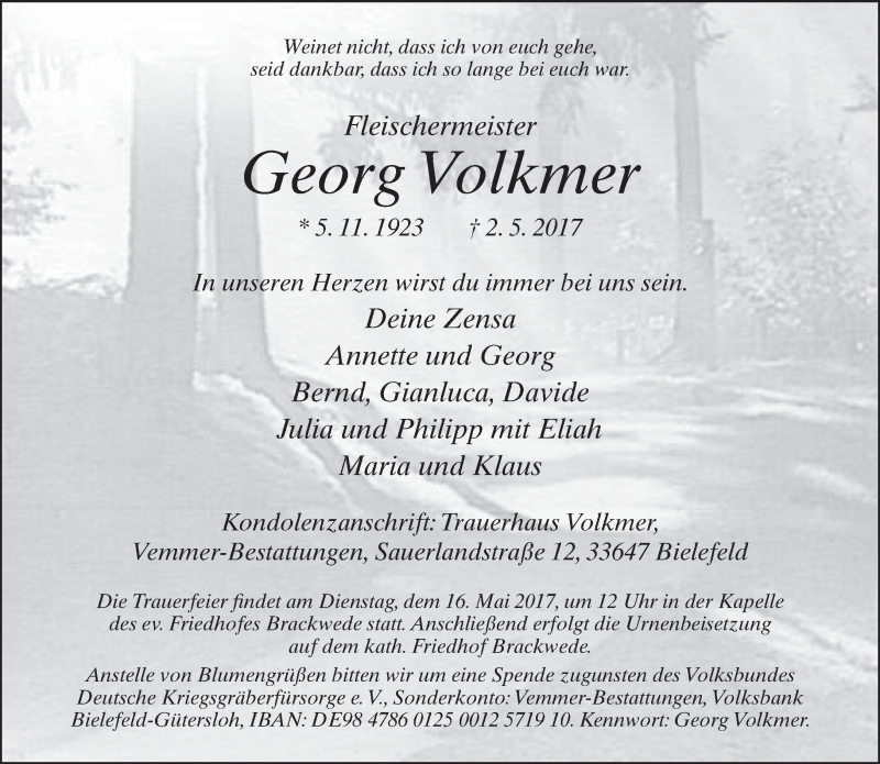 Hier finden Sie alle Traueranzeigen aus der Zeitung, die bisher für Georg Volkmer erschienen sind. Weitere Traueranzeigen, die in der Zeitung erscheinen, werden hier ebenfalls aufgelistet