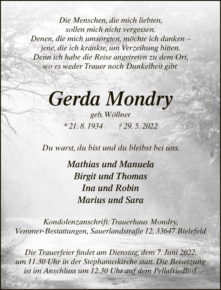 Hier finden Sie alle Traueranzeigen aus der Zeitung, die bisher für Gerda Mondry erschienen sind. Weitere Traueranzeigen, die in der Zeitung erscheinen, werden hier ebenfalls aufgelistet