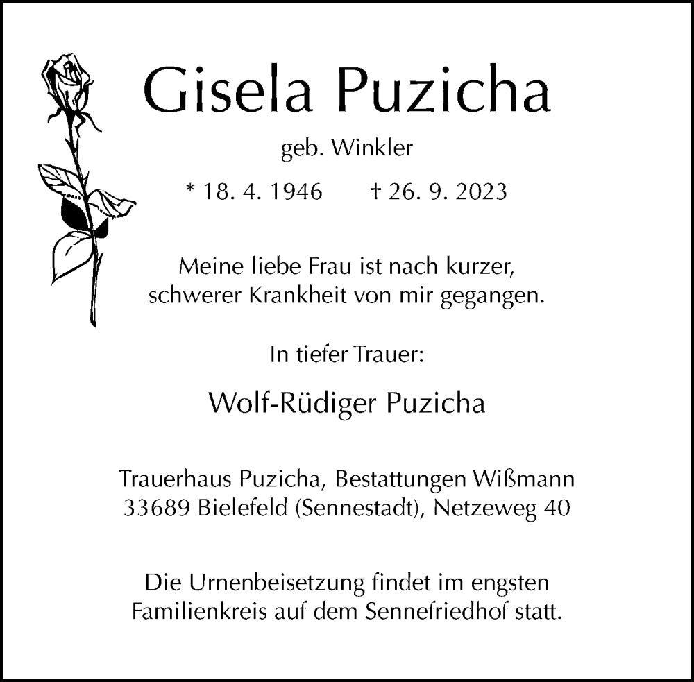 Hier finden Sie alle Traueranzeigen aus der Zeitung, die bisher für Gisela Puzicha erschienen sind. Weitere Traueranzeigen, die in der Zeitung erscheinen, werden hier ebenfalls aufgelistet