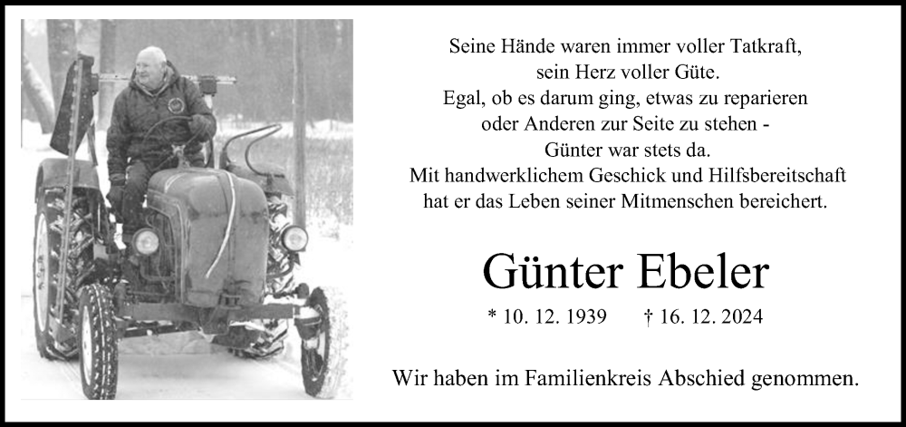 Hier finden Sie alle Traueranzeigen aus der Zeitung, die bisher für Günter Ebeler erschienen sind. Weitere Traueranzeigen, die in der Zeitung erscheinen, werden hier ebenfalls aufgelistet