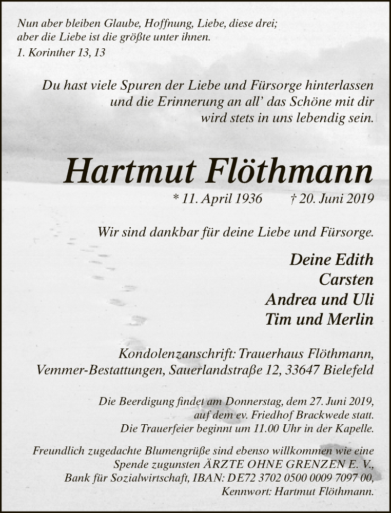 Hier finden Sie alle Traueranzeigen aus der Zeitung, die bisher für Hartmut Flöthmann erschienen sind. Weitere Traueranzeigen, die in der Zeitung erscheinen, werden hier ebenfalls aufgelistet