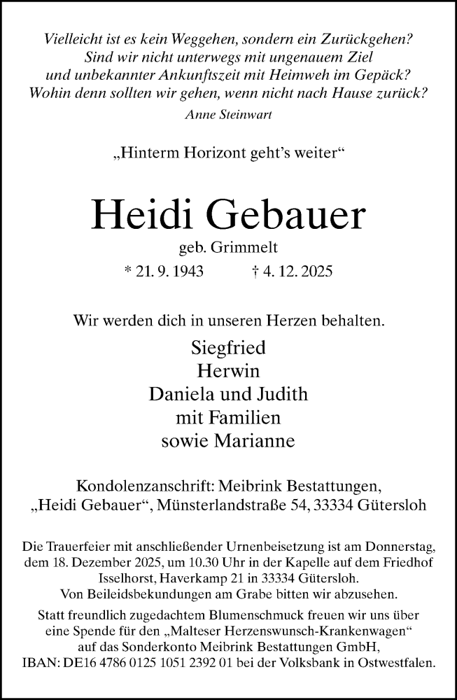 Hier finden Sie alle Traueranzeigen aus der Zeitung, die bisher für Heidi Gebauer erschienen sind. Weitere Traueranzeigen, die in der Zeitung erscheinen, werden hier ebenfalls aufgelistet