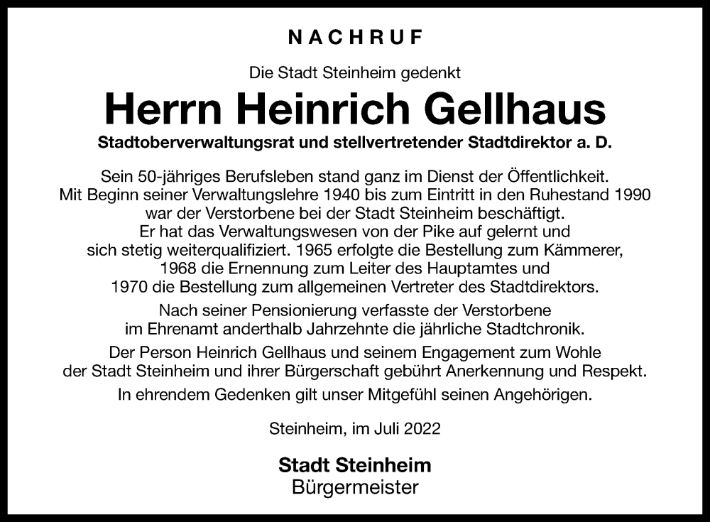 Hier finden Sie alle Traueranzeigen aus der Zeitung, die bisher für Heinz Gellhaus erschienen sind. Weitere Traueranzeigen, die in der Zeitung erscheinen, werden hier ebenfalls aufgelistet