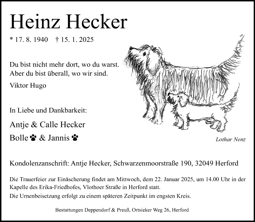 Hier finden Sie alle Traueranzeigen aus der Zeitung, die bisher für Heinz Hecker erschienen sind. Weitere Traueranzeigen, die in der Zeitung erscheinen, werden hier ebenfalls aufgelistet