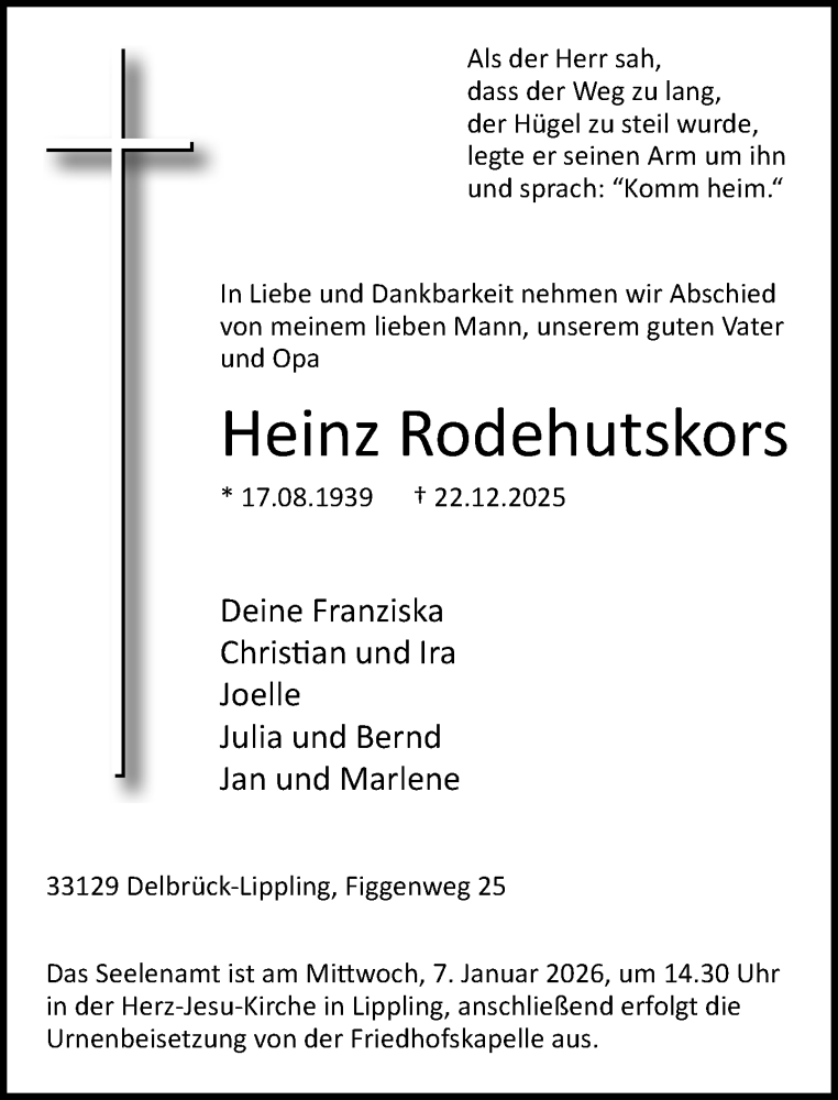 Hier finden Sie alle Traueranzeigen aus der Zeitung, die bisher für Heinz Rodehutskors erschienen sind. Weitere Traueranzeigen, die in der Zeitung erscheinen, werden hier ebenfalls aufgelistet