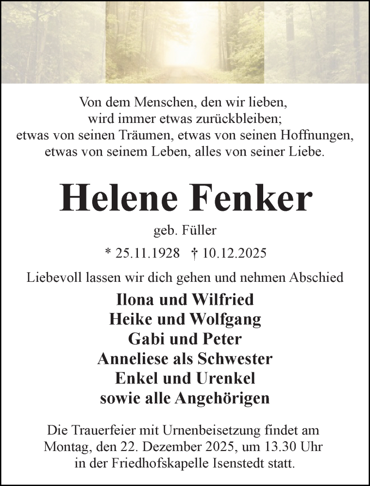 Hier finden Sie alle Traueranzeigen aus der Zeitung, die bisher für Helene Fenker erschienen sind. Weitere Traueranzeigen, die in der Zeitung erscheinen, werden hier ebenfalls aufgelistet