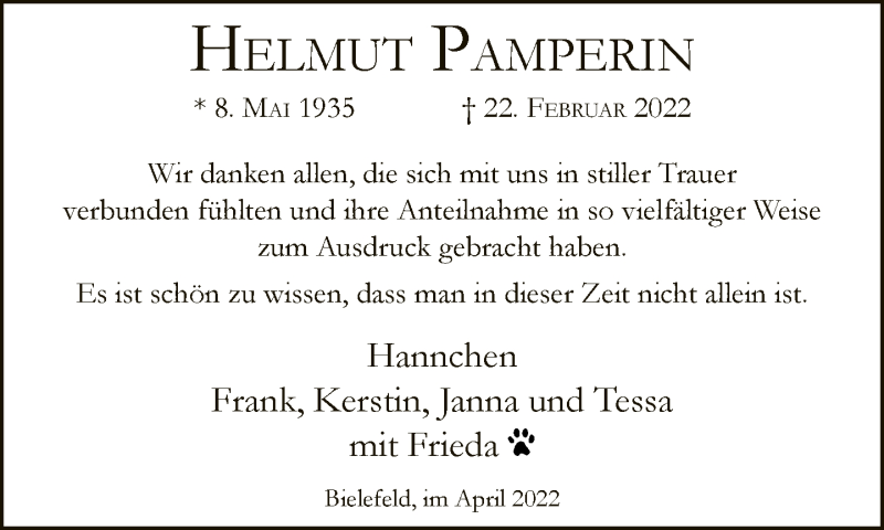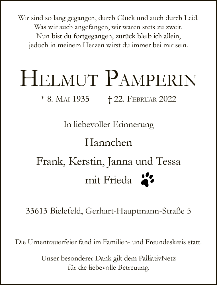 Hier finden Sie alle Traueranzeigen aus der Zeitung, die bisher für Helmut Pamperin erschienen sind. Weitere Traueranzeigen, die in der Zeitung erscheinen, werden hier ebenfalls aufgelistet