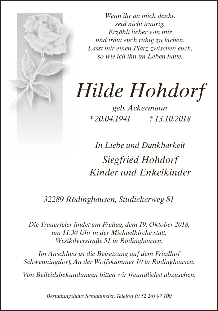 Hier finden Sie alle Traueranzeigen aus der Zeitung, die bisher für Hilde Hohdorf erschienen sind. Weitere Traueranzeigen, die in der Zeitung erscheinen, werden hier ebenfalls aufgelistet
