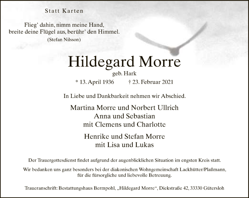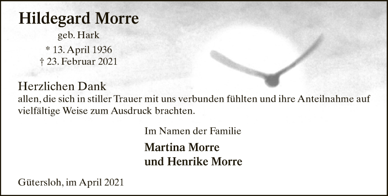 Hier finden Sie alle Traueranzeigen aus der Zeitung, die bisher für Hildegard Morre erschienen sind. Weitere Traueranzeigen, die in der Zeitung erscheinen, werden hier ebenfalls aufgelistet