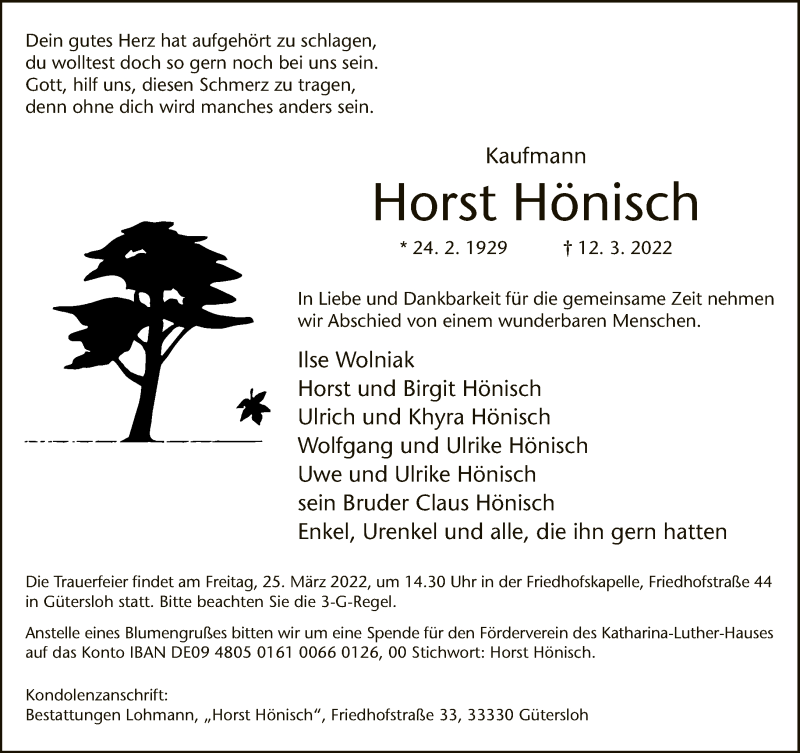Hier finden Sie alle Traueranzeigen aus der Zeitung, die bisher für Horst Hönisch erschienen sind. Weitere Traueranzeigen, die in der Zeitung erscheinen, werden hier ebenfalls aufgelistet