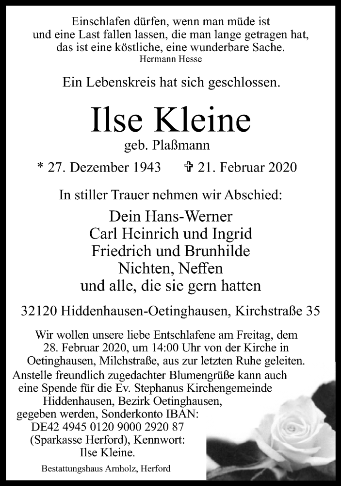 Hier finden Sie alle Traueranzeigen aus der Zeitung, die bisher für Ilse Kleine erschienen sind. Weitere Traueranzeigen, die in der Zeitung erscheinen, werden hier ebenfalls aufgelistet