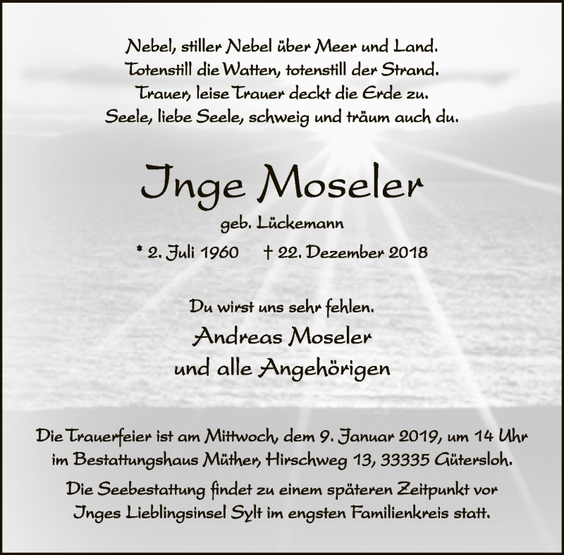 Hier finden Sie alle Traueranzeigen aus der Zeitung, die bisher für Inge Moseler erschienen sind. Weitere Traueranzeigen, die in der Zeitung erscheinen, werden hier ebenfalls aufgelistet