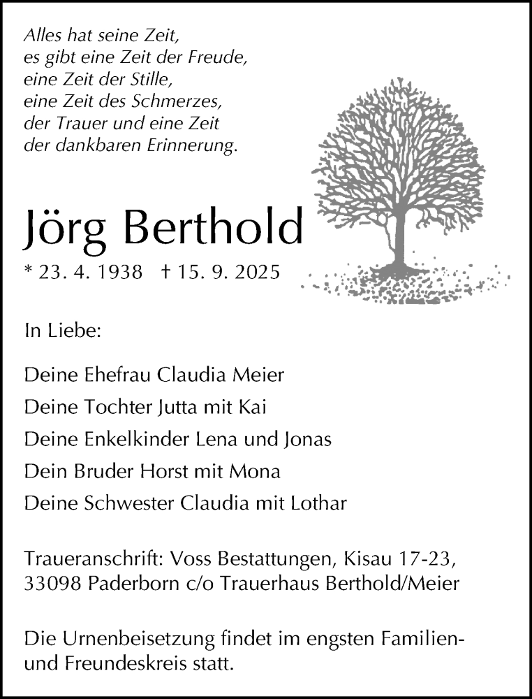 Hier finden Sie alle Traueranzeigen aus der Zeitung, die bisher für Jörg Berthold erschienen sind. Weitere Traueranzeigen, die in der Zeitung erscheinen, werden hier ebenfalls aufgelistet