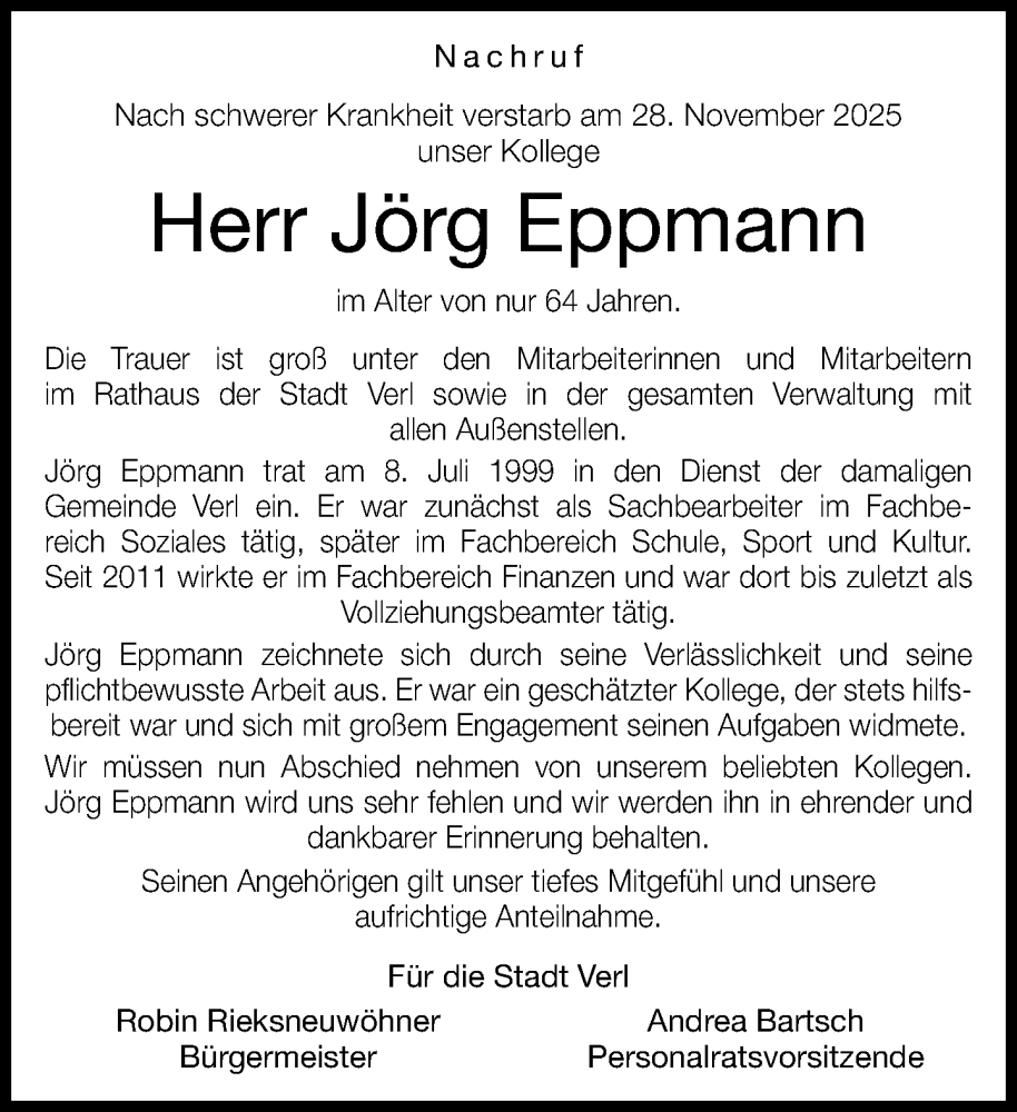Hier finden Sie alle Traueranzeigen aus der Zeitung, die bisher für Jörg Eppmann erschienen sind. Weitere Traueranzeigen, die in der Zeitung erscheinen, werden hier ebenfalls aufgelistet