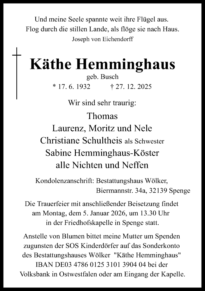 Hier finden Sie alle Traueranzeigen aus der Zeitung, die bisher für Käthe Hemminghaus erschienen sind. Weitere Traueranzeigen, die in der Zeitung erscheinen, werden hier ebenfalls aufgelistet