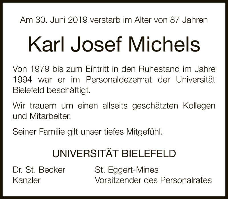 Hier finden Sie alle Traueranzeigen aus der Zeitung, die bisher für Karl Josef Michels erschienen sind. Weitere Traueranzeigen, die in der Zeitung erscheinen, werden hier ebenfalls aufgelistet