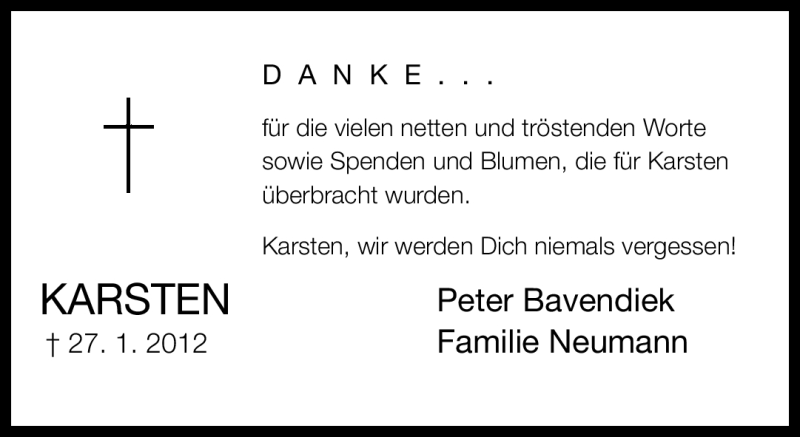 Hier finden Sie alle Traueranzeigen aus der Zeitung, die bisher für Karsten Neumann erschienen sind. Weitere Traueranzeigen, die in der Zeitung erscheinen, werden hier ebenfalls aufgelistet