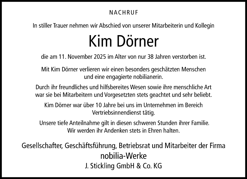 Hier finden Sie alle Traueranzeigen aus der Zeitung, die bisher für Kim Dörner erschienen sind. Weitere Traueranzeigen, die in der Zeitung erscheinen, werden hier ebenfalls aufgelistet