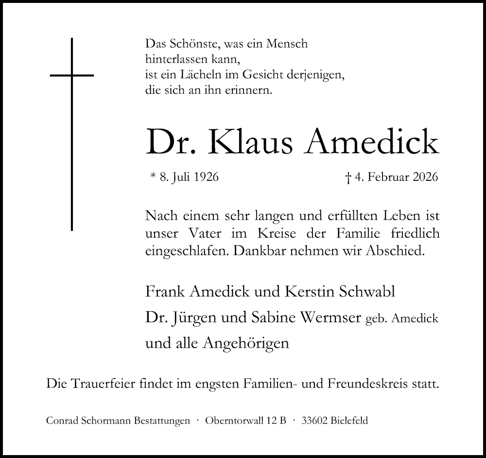 Hier finden Sie alle Traueranzeigen aus der Zeitung, die bisher für Klaus Amedick erschienen sind. Weitere Traueranzeigen, die in der Zeitung erscheinen, werden hier ebenfalls aufgelistet