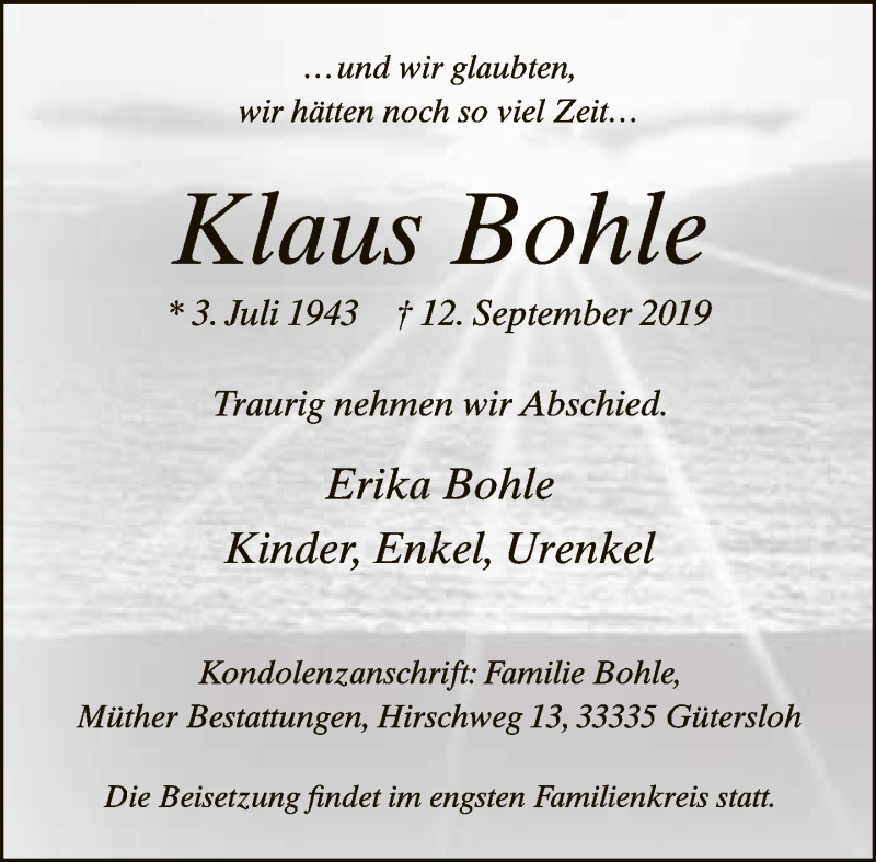 Hier finden Sie alle Traueranzeigen aus der Zeitung, die bisher für Klaus Bohle erschienen sind. Weitere Traueranzeigen, die in der Zeitung erscheinen, werden hier ebenfalls aufgelistet