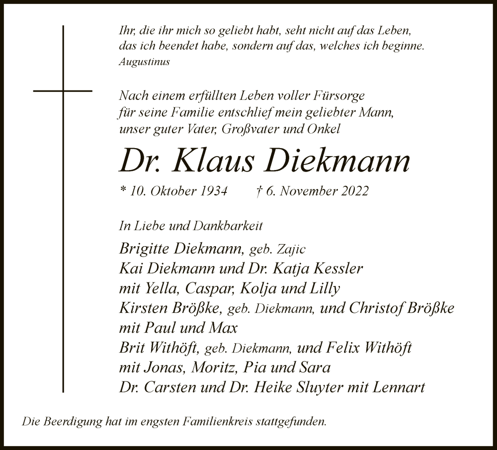 Hier finden Sie alle Traueranzeigen aus der Zeitung, die bisher für Klaus Diekmann erschienen sind. Weitere Traueranzeigen, die in der Zeitung erscheinen, werden hier ebenfalls aufgelistet