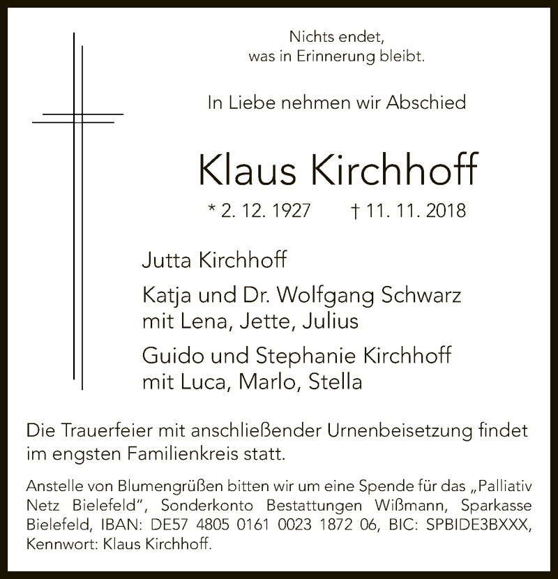 Hier finden Sie alle Traueranzeigen aus der Zeitung, die bisher für Klaus Kirchhoff erschienen sind. Weitere Traueranzeigen, die in der Zeitung erscheinen, werden hier ebenfalls aufgelistet