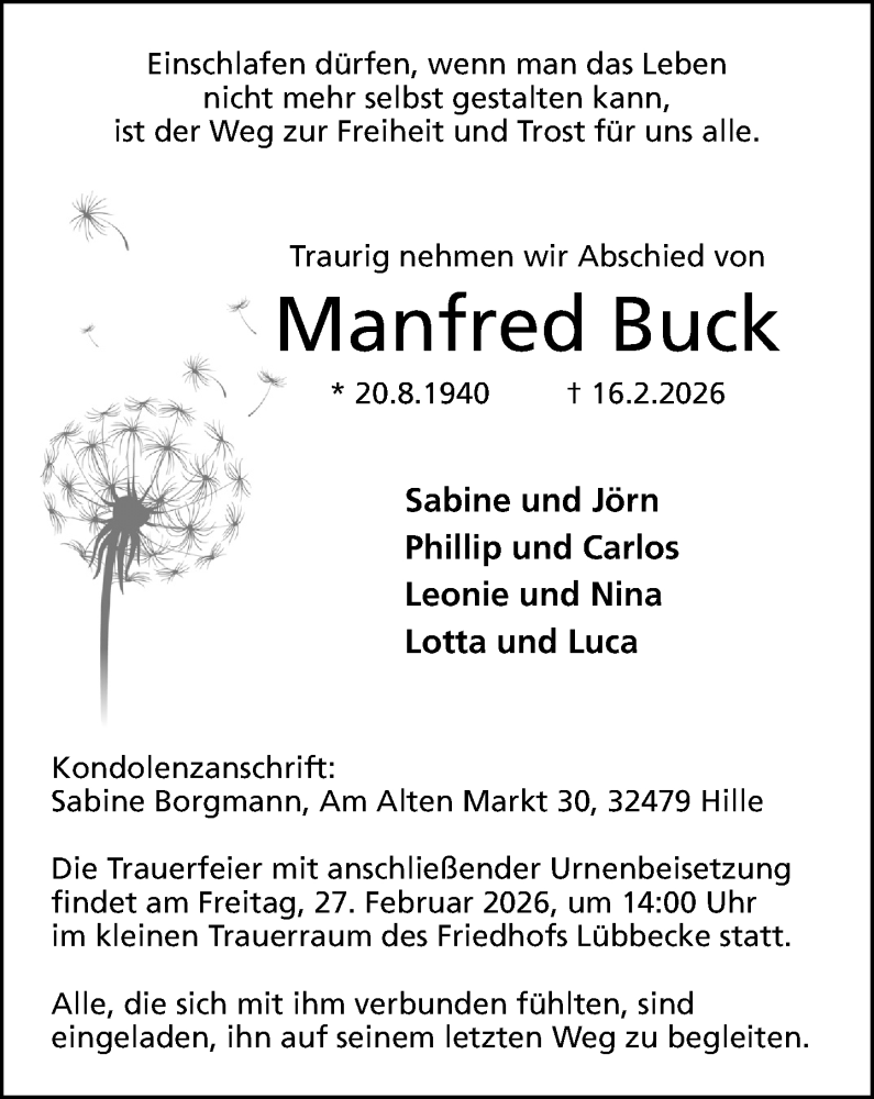 Hier finden Sie alle Traueranzeigen aus der Zeitung, die bisher für Manfred Buck erschienen sind. Weitere Traueranzeigen, die in der Zeitung erscheinen, werden hier ebenfalls aufgelistet