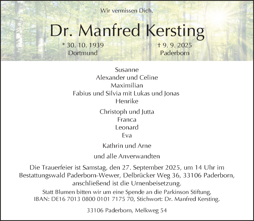 Hier finden Sie alle Traueranzeigen aus der Zeitung, die bisher für Manfred Kersting erschienen sind. Weitere Traueranzeigen, die in der Zeitung erscheinen, werden hier ebenfalls aufgelistet